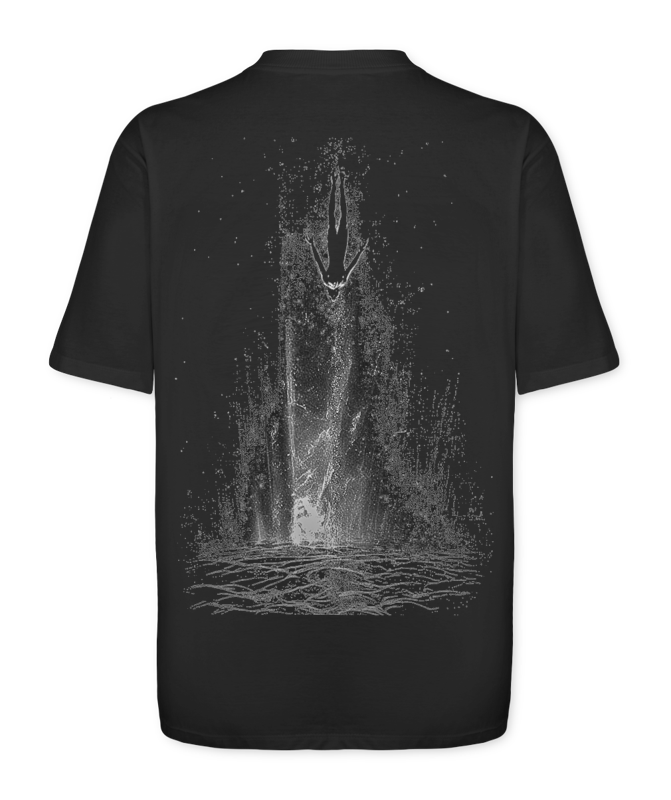 Um design impactante que desafia a gravidade: a silhueta, envolta por feixes de luz, aparece de cabeça para baixo, transmitindo a sensação de queda, suspensão e ruptura com o óbvio. A inversão cria um efeito visual intrigante, que transforma a peça em um sÃmbolo de caos, liberdade e autenticidade. Uma estampa ousada para quem enxerga beleza no incomum e força no contraste.